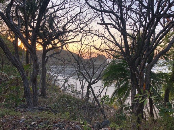 By taking the same path from the Playa Guiones to La Luna, instead of taking the path down to Playa Pelada, keep going up the road and you will find a grand, Aladdin-esque, yet eerie hotel, The Nosara Beach Hotel. We heard that this hotel may actually be the oldest hotel in the area and that it just reopened. This mysterious hotel had some guests, seemed to have a working bar and pool, as well as sweeping views of the coastline. This was also the location where our zip-lining tour with Miss Sky Canopy began. They seemed to be running their operations out of this hotel and we were fitted with our harnesses and helmets right in the lobby. Miss Sky Canopy offers two zip-lining tours per day along the longest zip-line in Costa Rica. The tour costs $75 per person cash only, paid directly to who we thought was Miss Sky herself, behind her mahogany desk, in her make-shift office, inside the Nosara Beach Hotel.