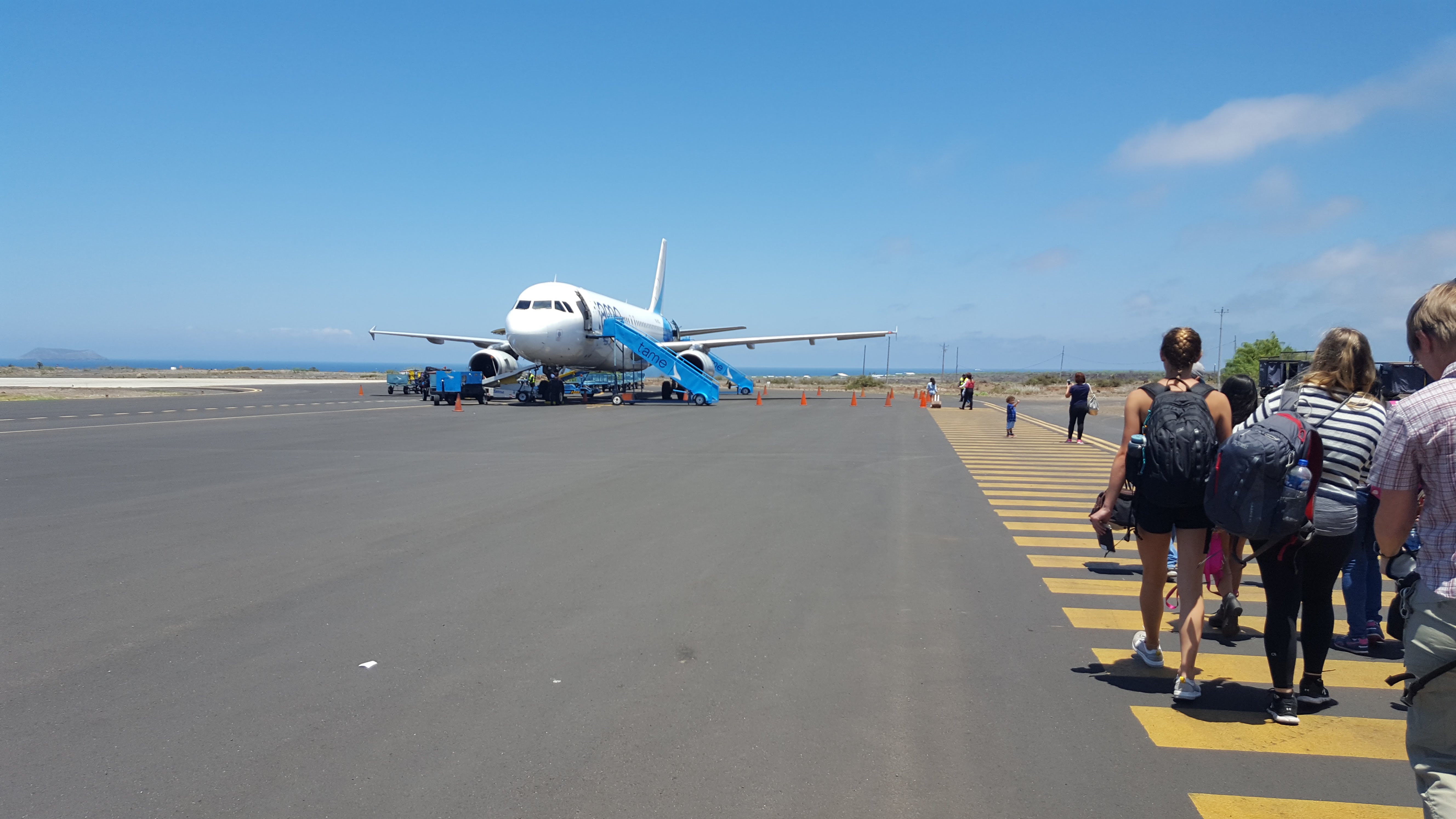 When you arrive in Santa Cruz you will take a water taxi back to the port and will not need to go through another inspection. We grabbed a cab right at the port to go to Baltra because even though we made it to Santa Cruz, getting to Baltra is another journey. Baltra is another island directly north of Santa Cruz that is used as an airport. There doesn’t seem to be anything else there. Puerto Ayora, where your ferry arrived from Isabela, is at the southernmost point of Santa Cruz so traveling to the northern most point to get to Baltra takes some time, about an hour to be exact. Once your cab takes you up north, he will take you to a port where there are water taxis and a ferry to Baltra. Take the ferry, they are spacious, comfortable, and the ride is only 5-10 minutes across the canal. Just hop on and off with your luggage. When you get off there will be buses to take you to the airport. Put your luggage on the bottom and get right on. They are shuttles to the airport and it takes about 5-10 minutes to get there.
