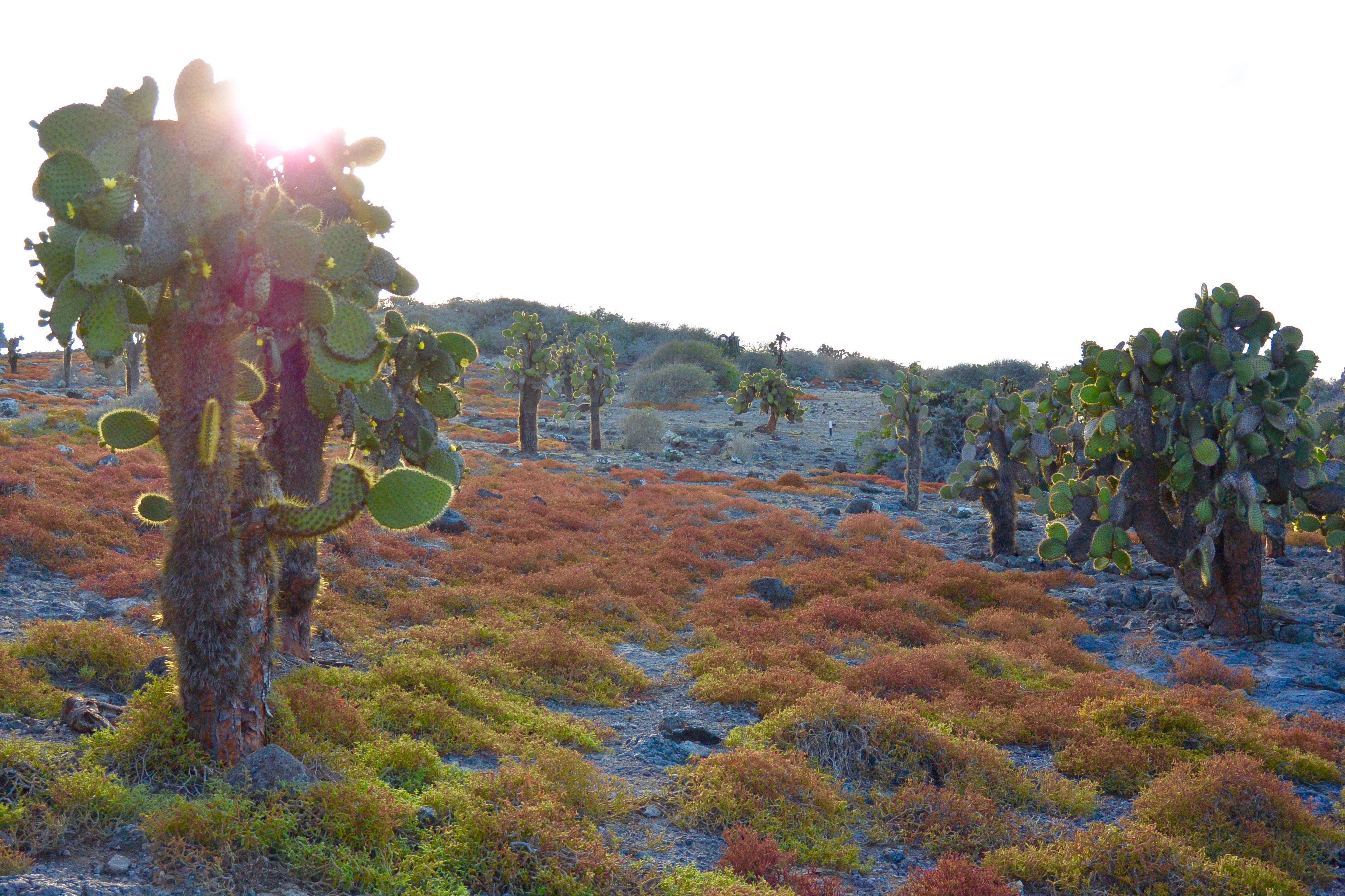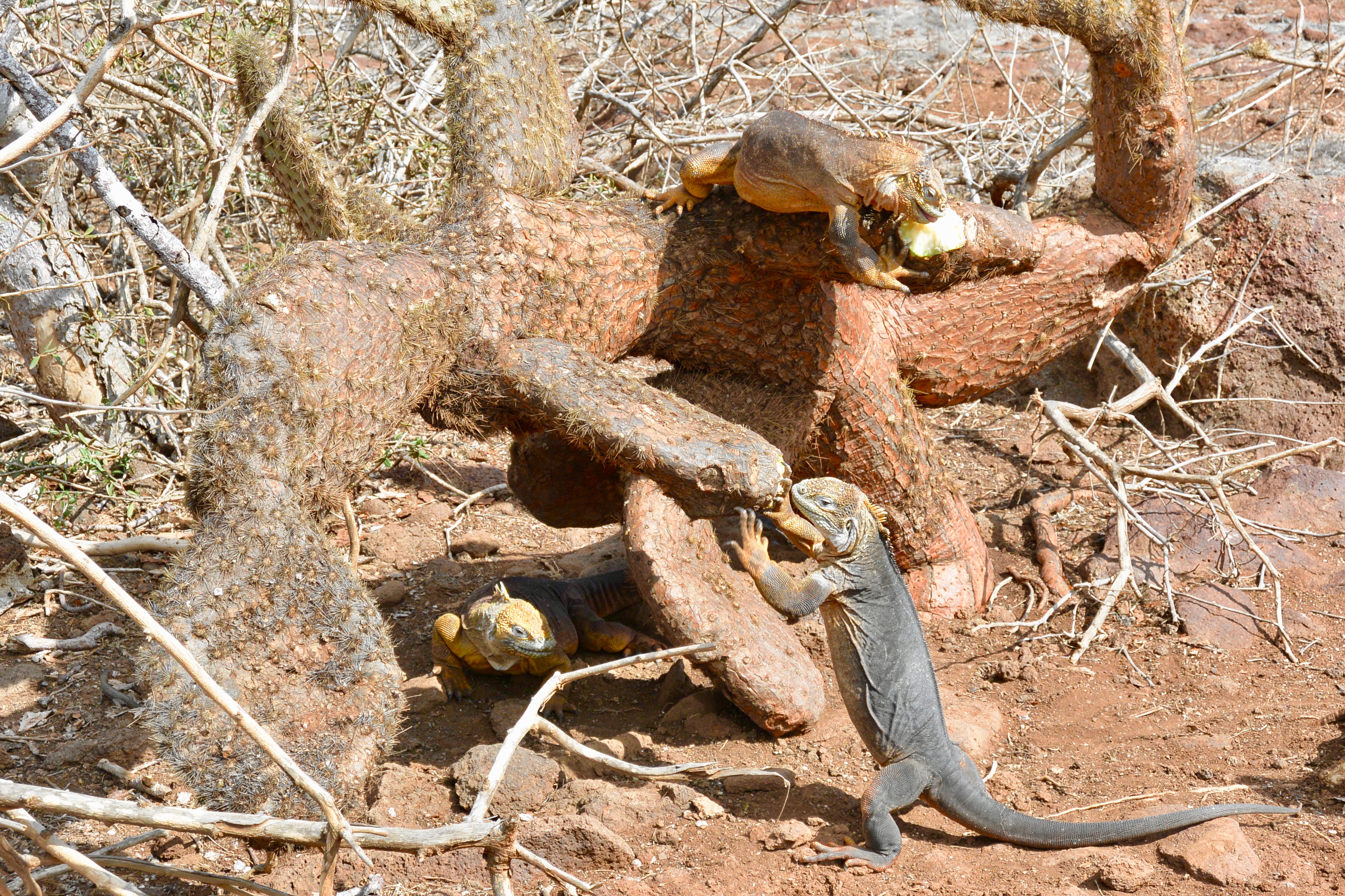 After our hike among the birds, we got on the boat, changed into our wetsuits, and went snorkeling around the island. We got the opportunity to see some great wildlife in the water as well. I even had a run in with a sea lion. After fueling up with an onboard lunch and a short break, we headed for our late-afternoon hike on South Plaza Island. This island boasted unfamiliar landscapes with several species of cacti, sea lions taking siestas, and iguanas.