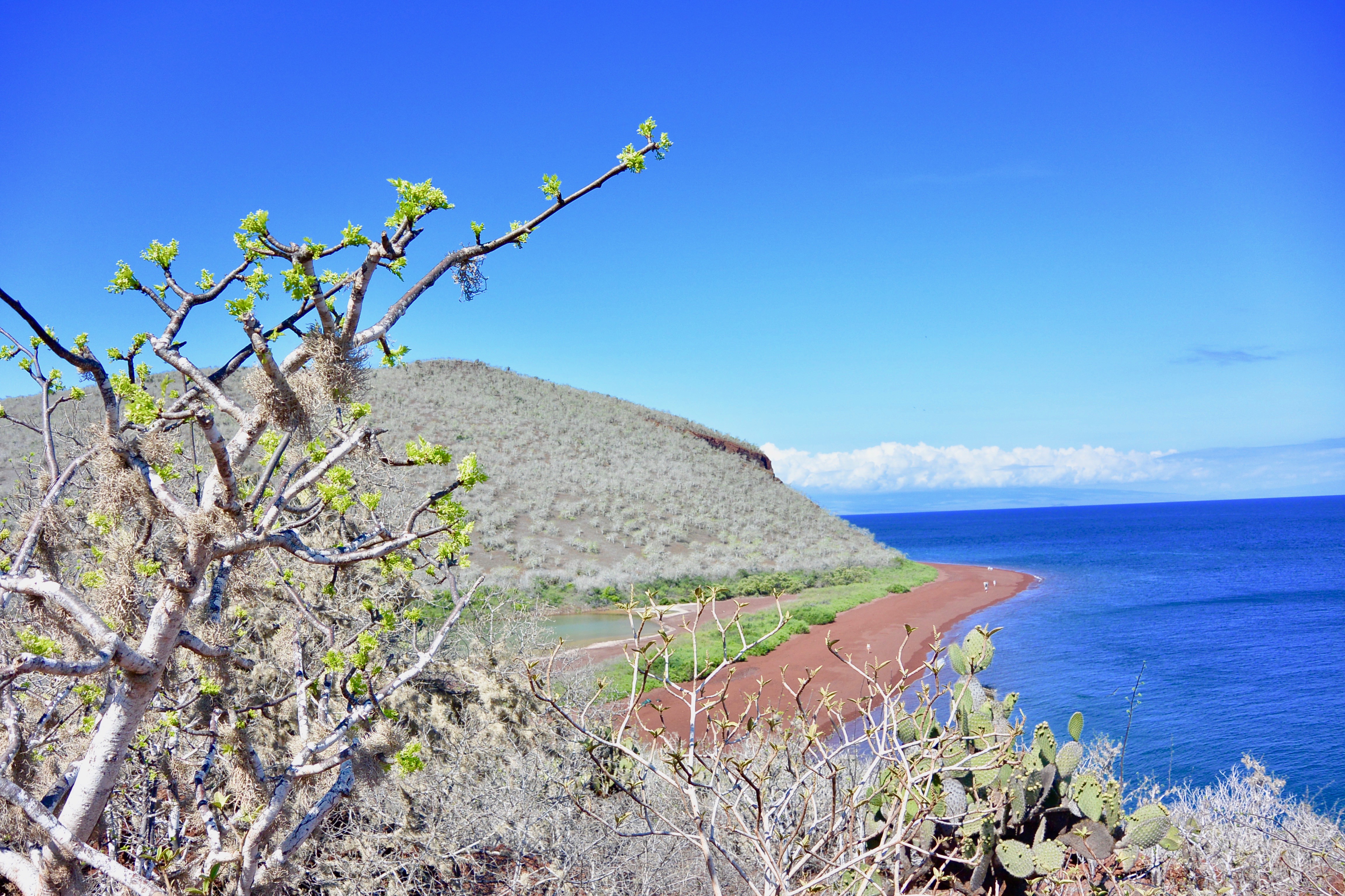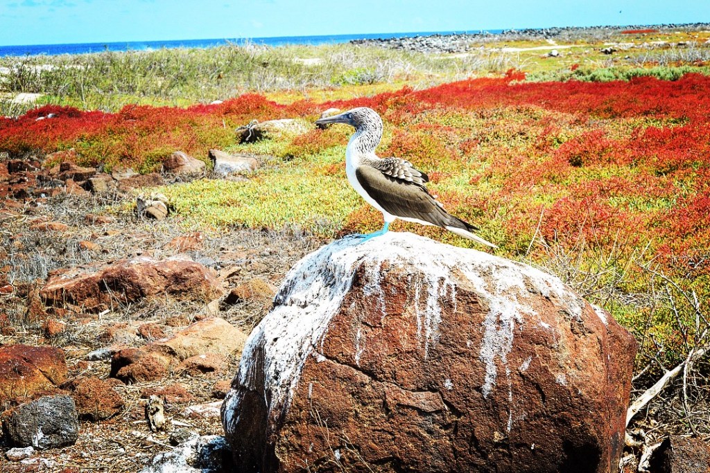 The following morning, we cruised over to Rabida, an island with striking red sands and conspicuous wildlife above and below sea level. We started off the day taking a “panga”, the Ecuadoran nickname for dingy boat, around the coasts of the island to view the frigates, pelicans, and blue-footed boobies. Afterward, we beached the panga on the shore and had a wet landing on the island. We went on a picturesque hike onto the high points of the island where we were able to catch some beautiful views and photography.