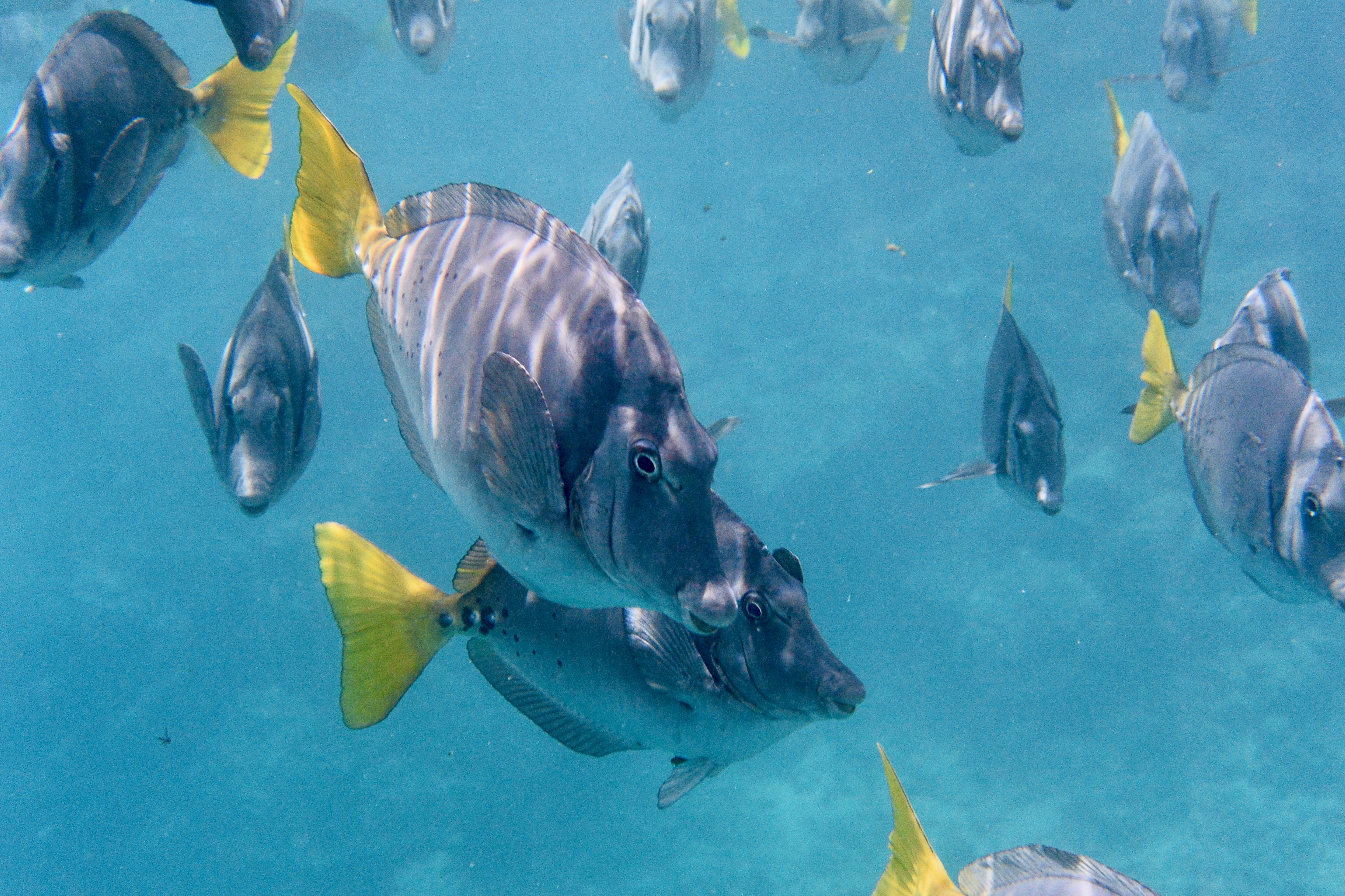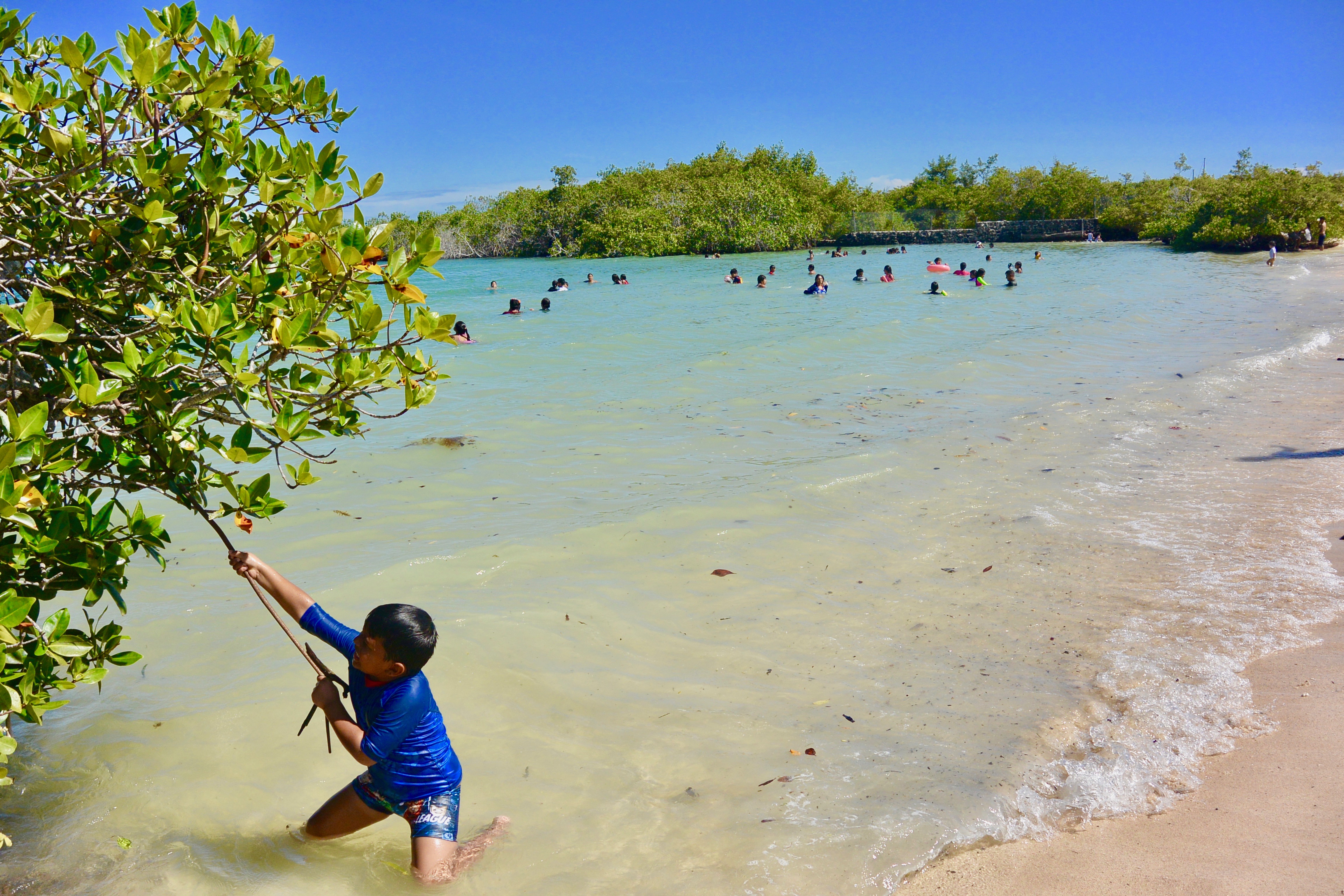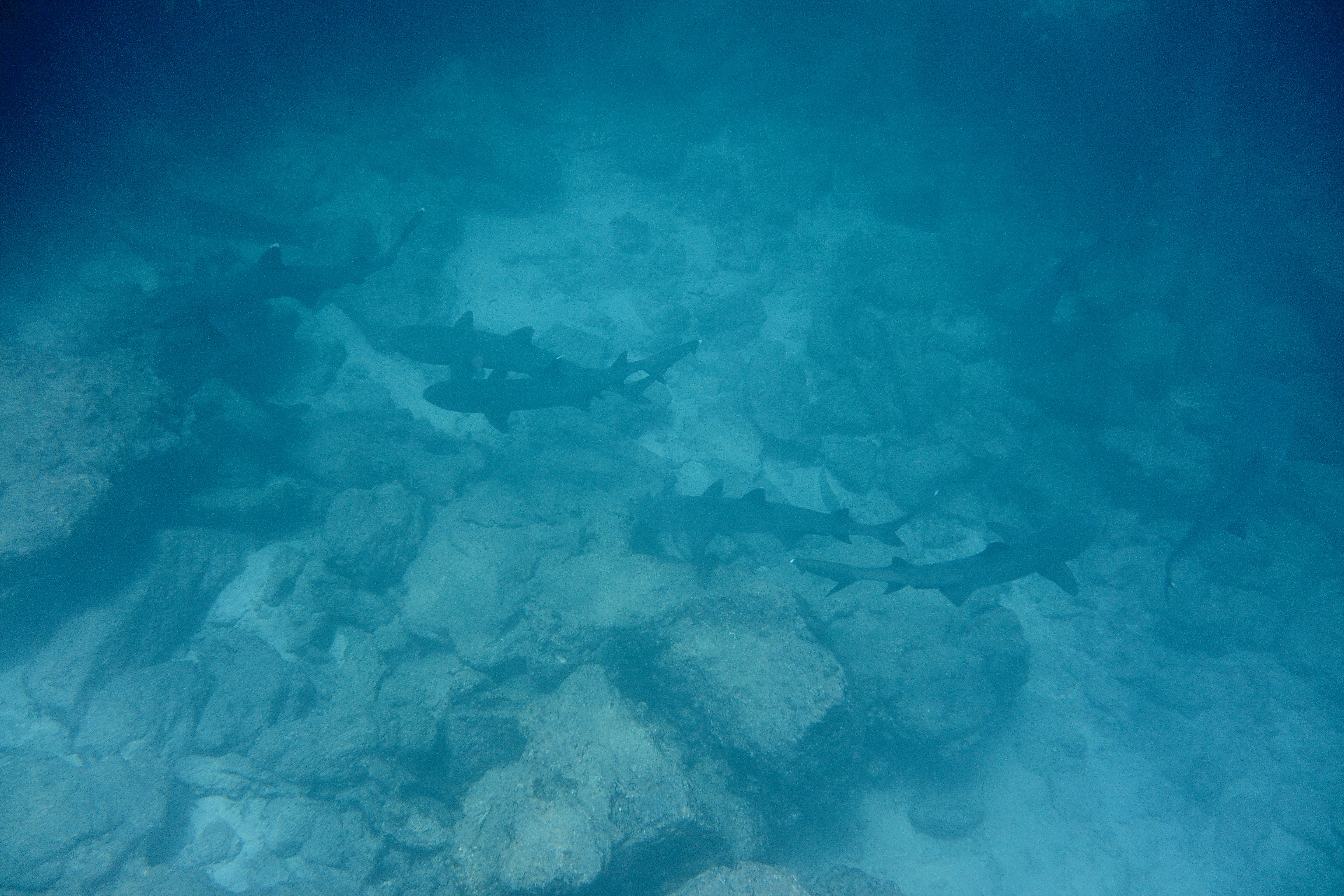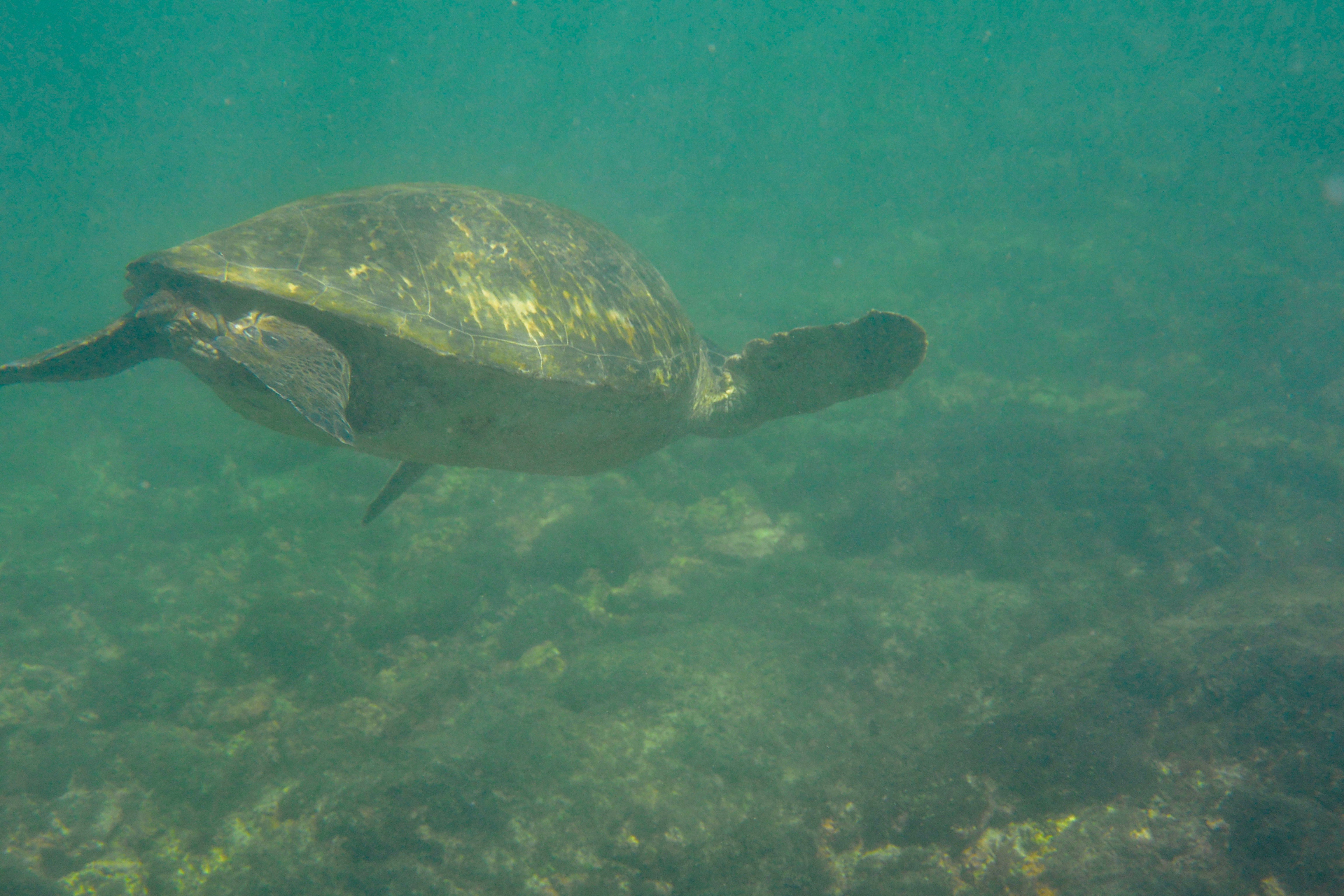 After our short hike, we took another rough boat ride to the snorkeling spot near the underwater tunnels. Gabriel guided us through a route that allowed us to see ample wildlife. Gabriel knew the area like the back of his hand, as he was born and raised in Isabela, but he was still giddy with excitement every time he found sharks, turtles, etc. We saw at least 20 sharks in this area, but not to worry, they were all sleeping in underwater caves. All of us would dip our heads into the cave and observe them sleeping on the ocean floor. After going through the shark dens, we moved on to sea turtles. We saw dozens of them, magnificent in size, gliding gracefully through the water. We saw one turtle that was as big as me with beautiful patterns on his shell. Next, we went into the mangroves to hunt for seahorse sightings, and we were lucky enough to spot one. I found one with its tail wrapped around a branch, just hanging out there. We also saw a sea snake, a school of giant mantas and golden rays, and a lot of other fish there. Los Tuneles has a lot of plankton in the water so sometimes our sight was a bit blurry and some of the pictures were hard to capture, but this very food is why there is such a diverse group of sea animals there.