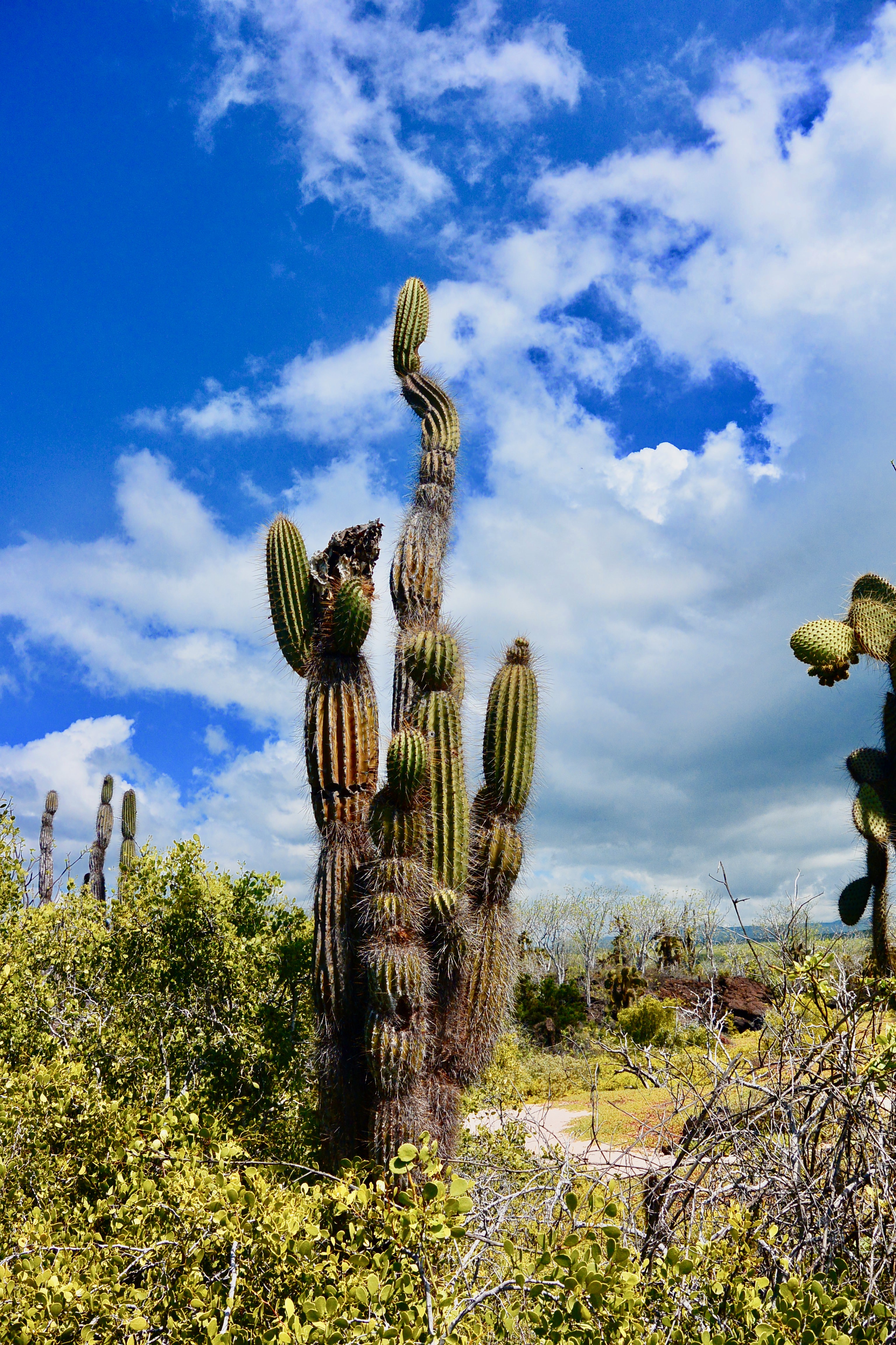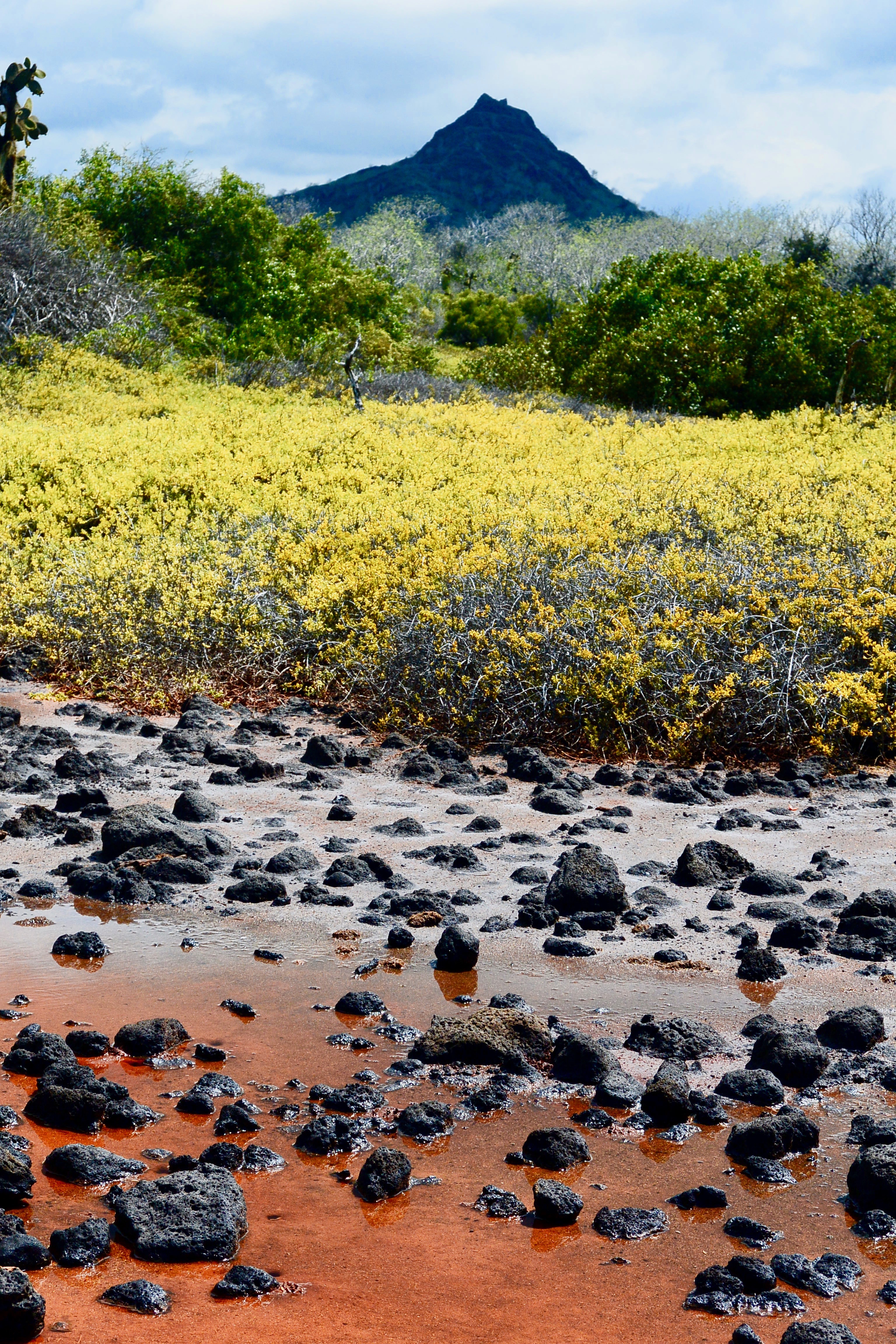 After we took full advantage of the views in El Junco, we headed to Galapaguera to see the famous giant tortoises. Galapaguera is a refuge where giant tortoises live in semi-natural conditions. There are several trails through the grounds where you can observe the giant tortoises. They are pretty protective so be careful. We observed a family of the tortoises and one of the males felt threatened and began starting towards us. But don’t worry, we were able to escape with time to spare. Afterward, we went to Puerto Chino, a popular beach on the island. Unfortunately, because there was so much rain that week, the beach seemed to be washed away and we walked along the boardwalk to something reminiscent of a lagoon with lots of large rocks. We had a nice time walking around the area and climbing the rocks. There were a lot of finches in the area and when I put out my hands they wanted to perch on my fingers, which made me feel like a Galapagan Disney princess.