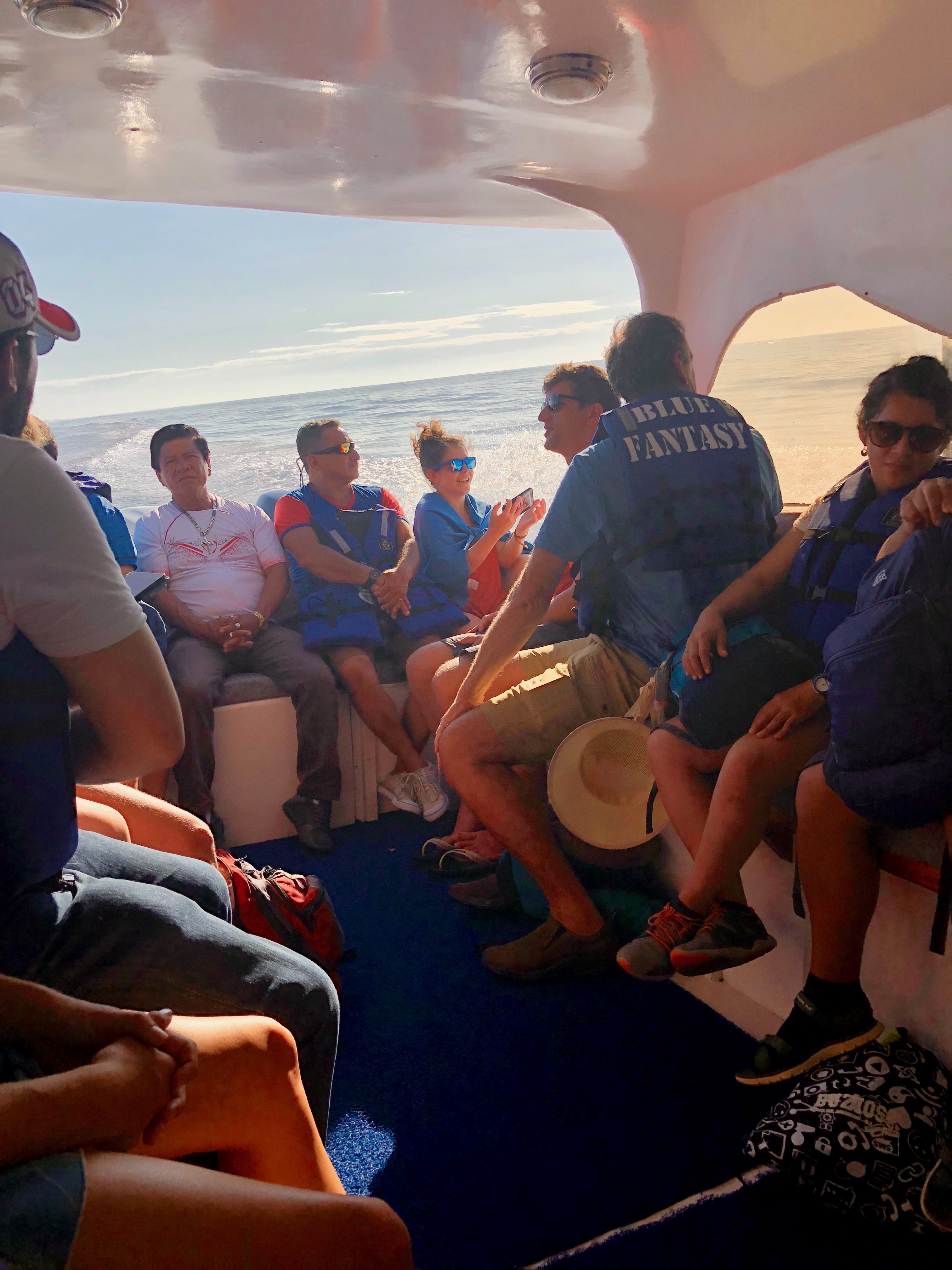 Afterward, we got back on the boat, ate a light lunch of chicken with rice, and got some towels from the crew. Then we began our journey back to Puerto Villamil.