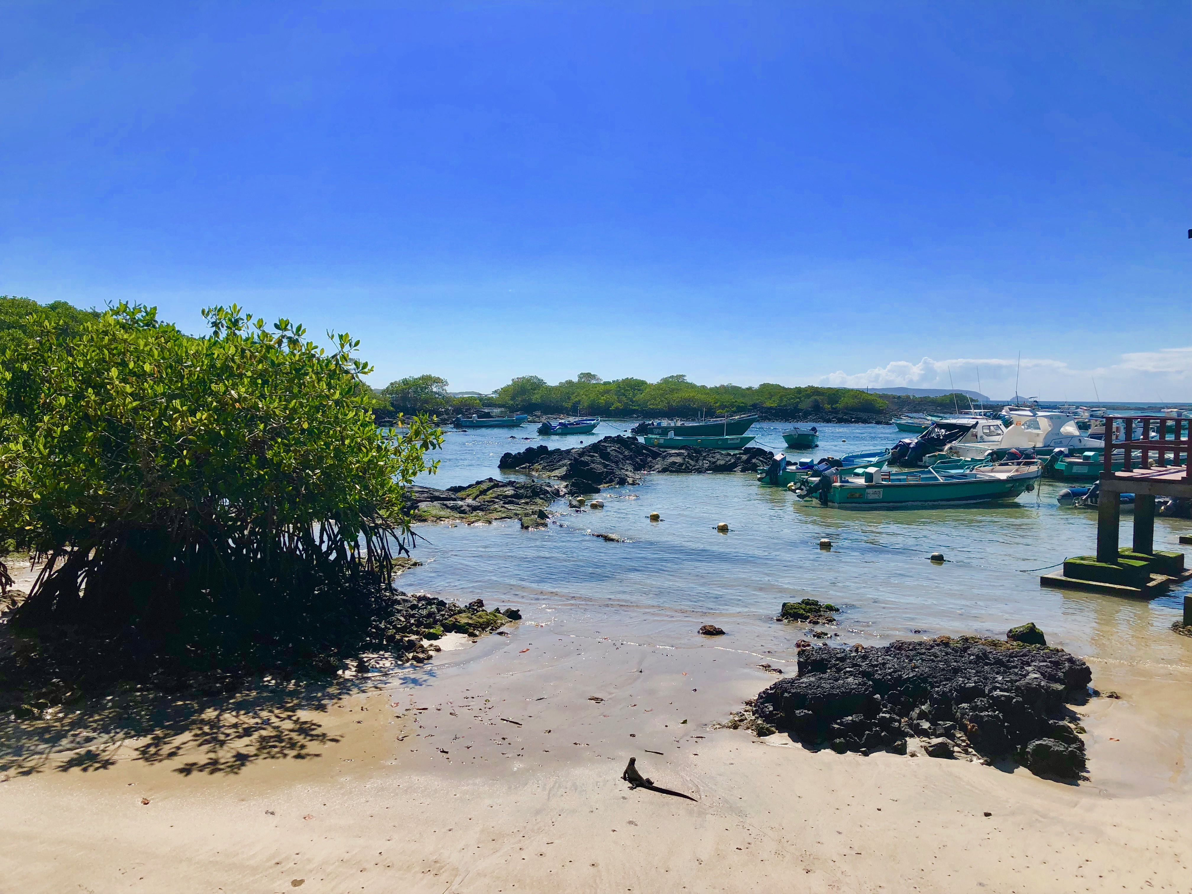 The Semilla Verde Hotel is about a 10-minute drive from Puerto Ayora, where all of the human action is on this island. It’s fairly easy to get a cab to town from the hotel. All you need to do is ask someone from the staff for a cab and one will arrive within 15 minutes. We ventured to Puerto Ayora to go to the German Beach, grab lunch, and arrange our ferry tickets to Isabela. We took a water taxi over the Angermeyer Waterfront Inn where we had a nice lunch on the harbor. Afterward, we followed the paths to the German beach. This was a pretty, local beach with calm waters. After spending some time along the paths and sands of this area of Puerto Ayora, we headed back to town and prepared ourselves for our journey to Isabela.