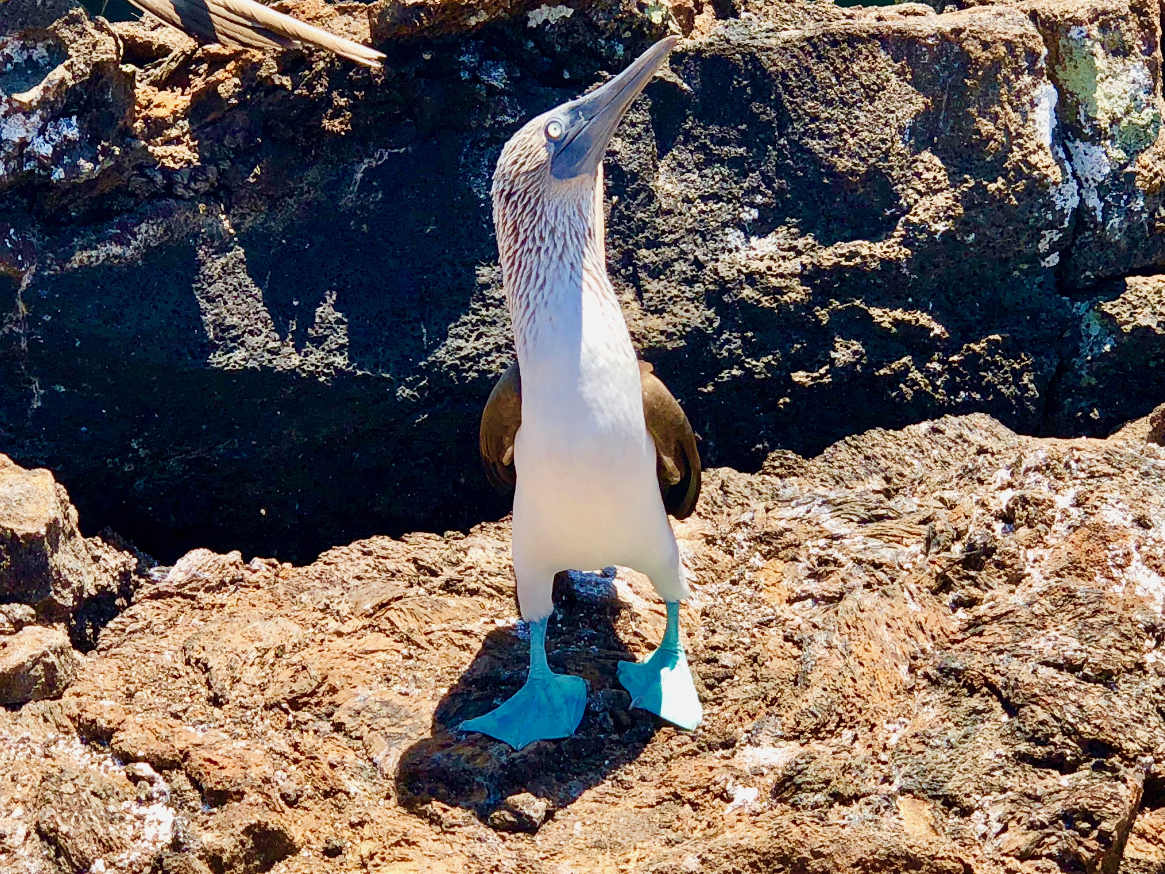 As we walked along the tunnels, the view was stunning. We happened upon a few blue footed boobies and we finally got to see their mating dance in full show. Apparently, they only do this dance about twice per year and they also dance when they are well fed. The males and females dance together and you can tell them apart by the size of their pupils, male’s bigger, female’s smaller, and the sounds they made mid-dance, males whistle and females make more of an “ack” sound. Gender roles among blue footed boobies are interesting to watch. At Los Tuneles, we were lucky enough to observe this through dance and their egg laying methods. Apparently, the female lays her eggs, then the male sits on them and watches them while the female does her thing.