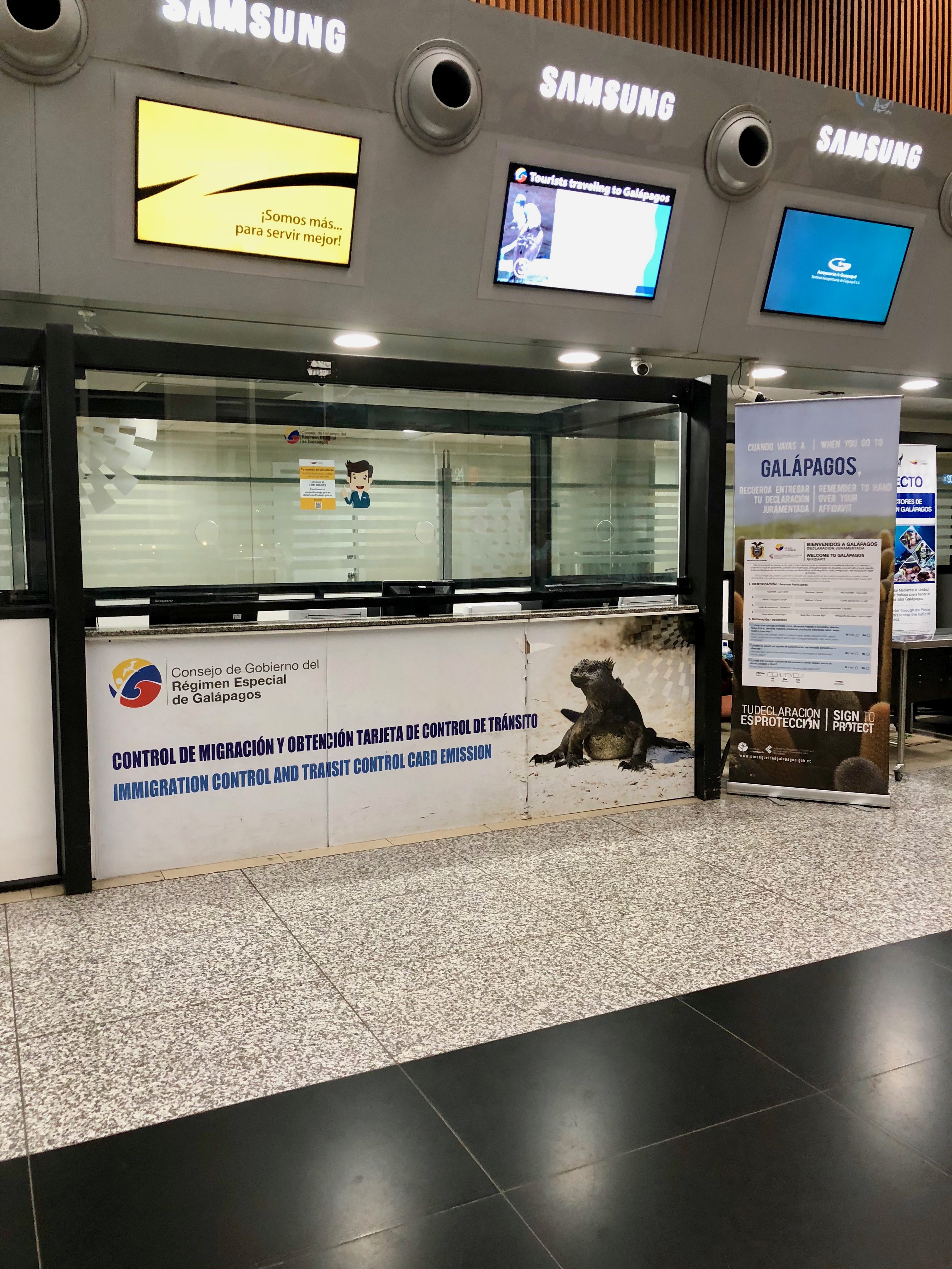 After you do so, you will receive a voucher. Hold onto this! You will need it when you arrive in the Galapagos. If you did not print out your boarding pass for your flight to the Galapagos Islands before hand, you will need to check in to your flight before going to the Galapagos Immigration Control window. I recommend printing out this boarding pass at home before you fly to Guayaquil.