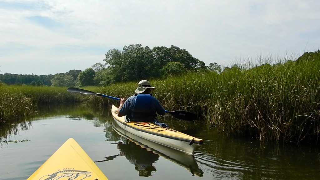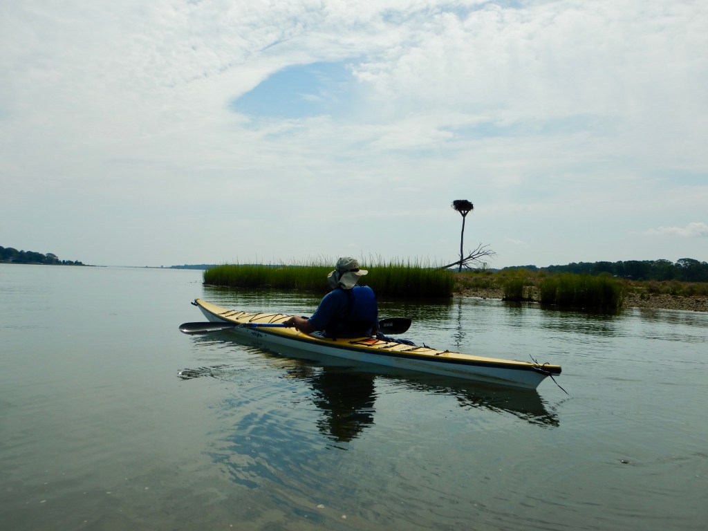 After our marsh adventure we kayaked through Coecles Harbor and spotted several ospreys along the way. The conditions for kayaking were perfect. There were barely any waves in the harbor and our guide said that these are the typical conditions there during the summer. We also kayaked along the Moshomack Preserve as our guide told us stories about how he wrangled ducks closeby the day before.