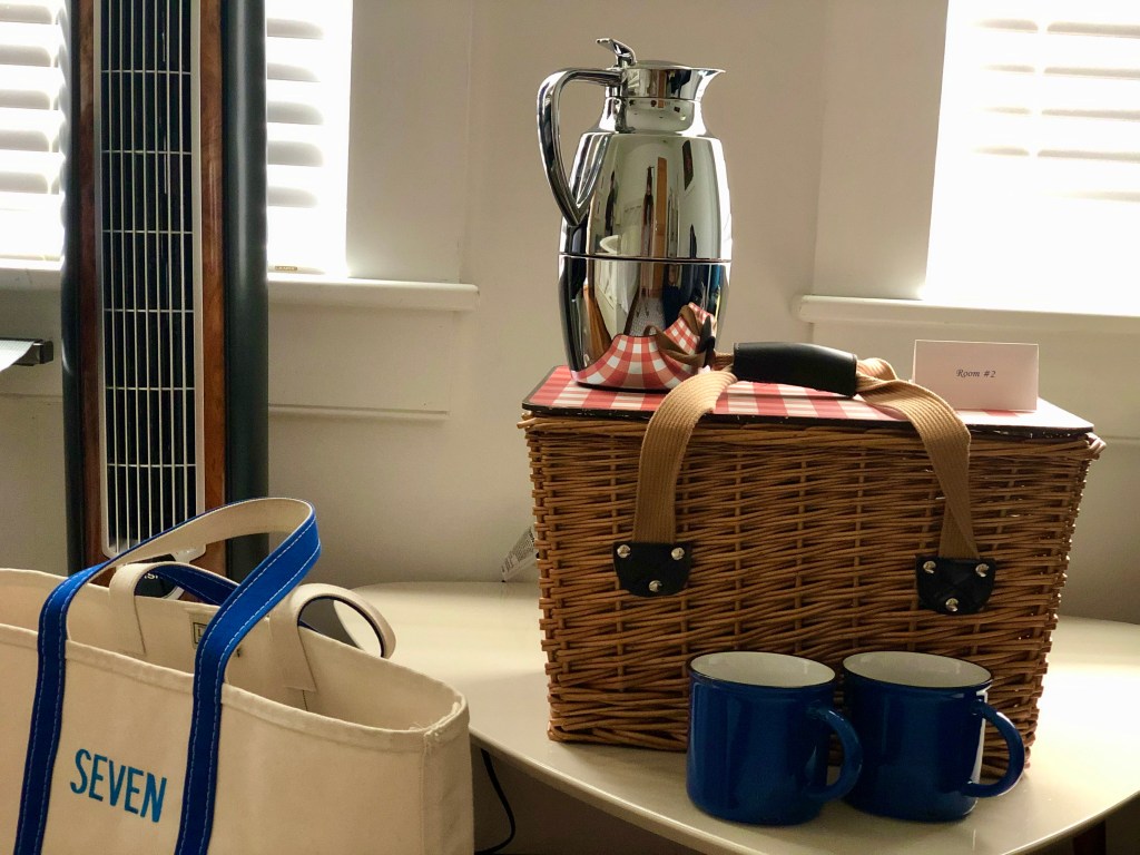 SEVEN is a cute, yet modern Bed and Breakfast run by two lovely and accommodating ladies, Beth and Dominica, located just a 5-minute walk from Crescent Beach. The rooms were very clean with top notch linens and toiletries. They had French milled soaps, shampoo and conditioner from Cold Spring Apothecary that made my hair smell like a million bucks, and the softest sheets and towels. In addition to the room amenities, they also offered quality mountain bikes for $30 per person for the whole stay, parking stickers for the beach (these are absolutely necessary in the summer!), and an abundance of beach supplies including lounge chairs, umbrellas, big L.L. Bean beach bags, and large beach towels all ready to go straight to the beach. We also received a daily breakfast picnic basket full of breakfast goods such as berries, premium yogurt, a quarter block of manchego cheese, fresh baguette and croissants plus a thermos full of coffee. We were very satisfied with our stay and if we ever needed any help Beth and Dominica were right there to answer our questions in person or via text.