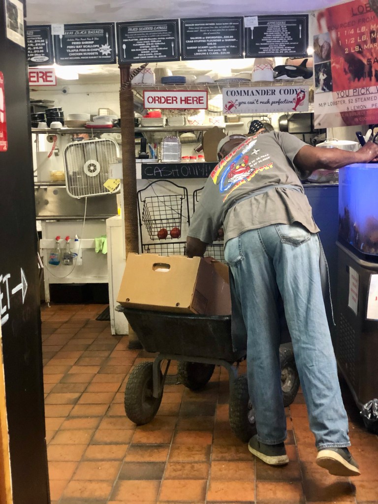 This is a very popular seafood joint on the island that’s BYOB. We stopped here for lunch after we hiked the Mashomack Preserve. When we got there, they had a sign on the door indicating that they weren’t doing regular lunch because of a catering job that day, but had lobster rolls and shrimp cocktail available. We saw a guy loading fresh lobsters into the tank, so we thought we couldn’t go wrong with a lobster roll and our instincts did not fail us. We grabbed two lobster rolls with fries and ate them on the front porch of SEVEN.