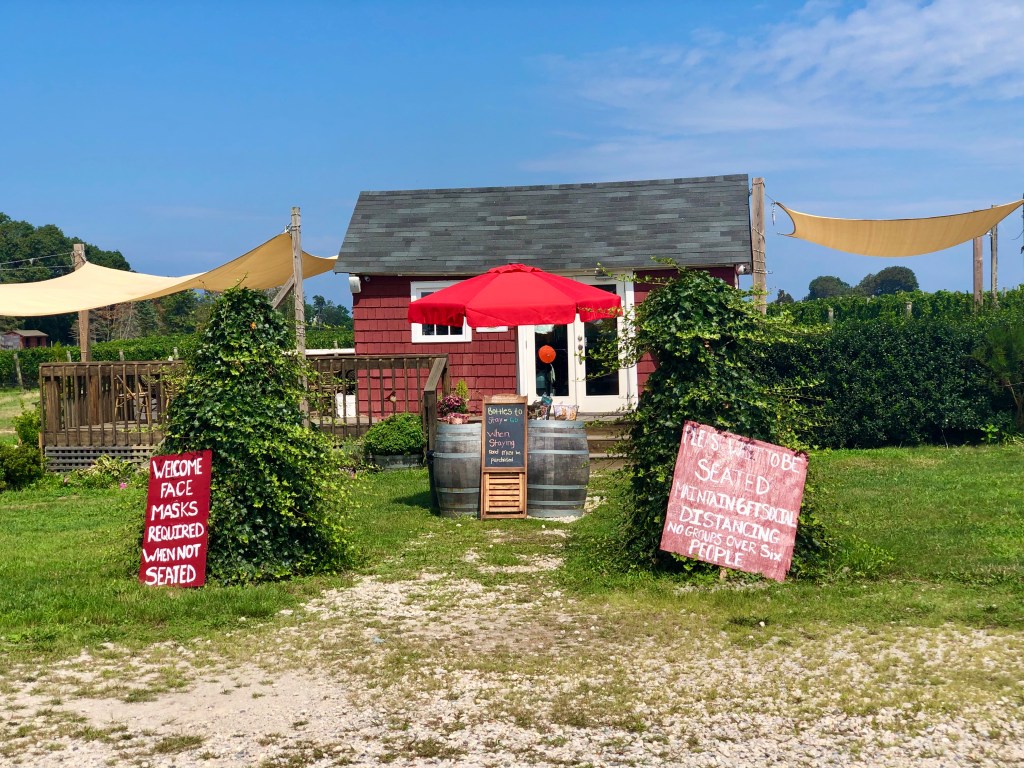 Maccari offers some of the best wine the North Fork has to offer. We had been here before a few years ago and became big fans of their Dos Aguas red blend. Their tasting room was closed when we went because of the pandemic, but they do have their shop open for pick up. We just went up to the window, told the cashier what we wanted and paid right on the deck.